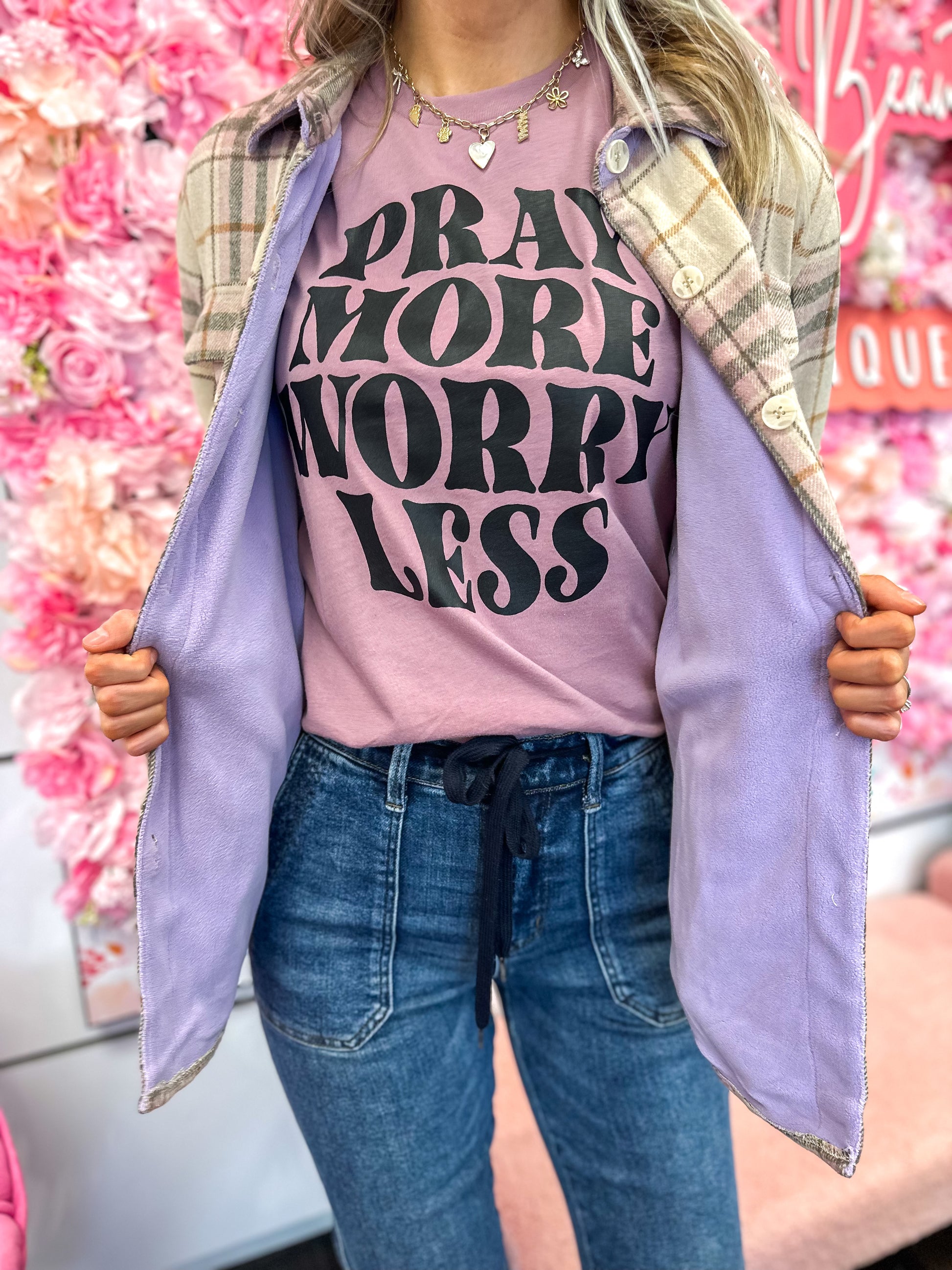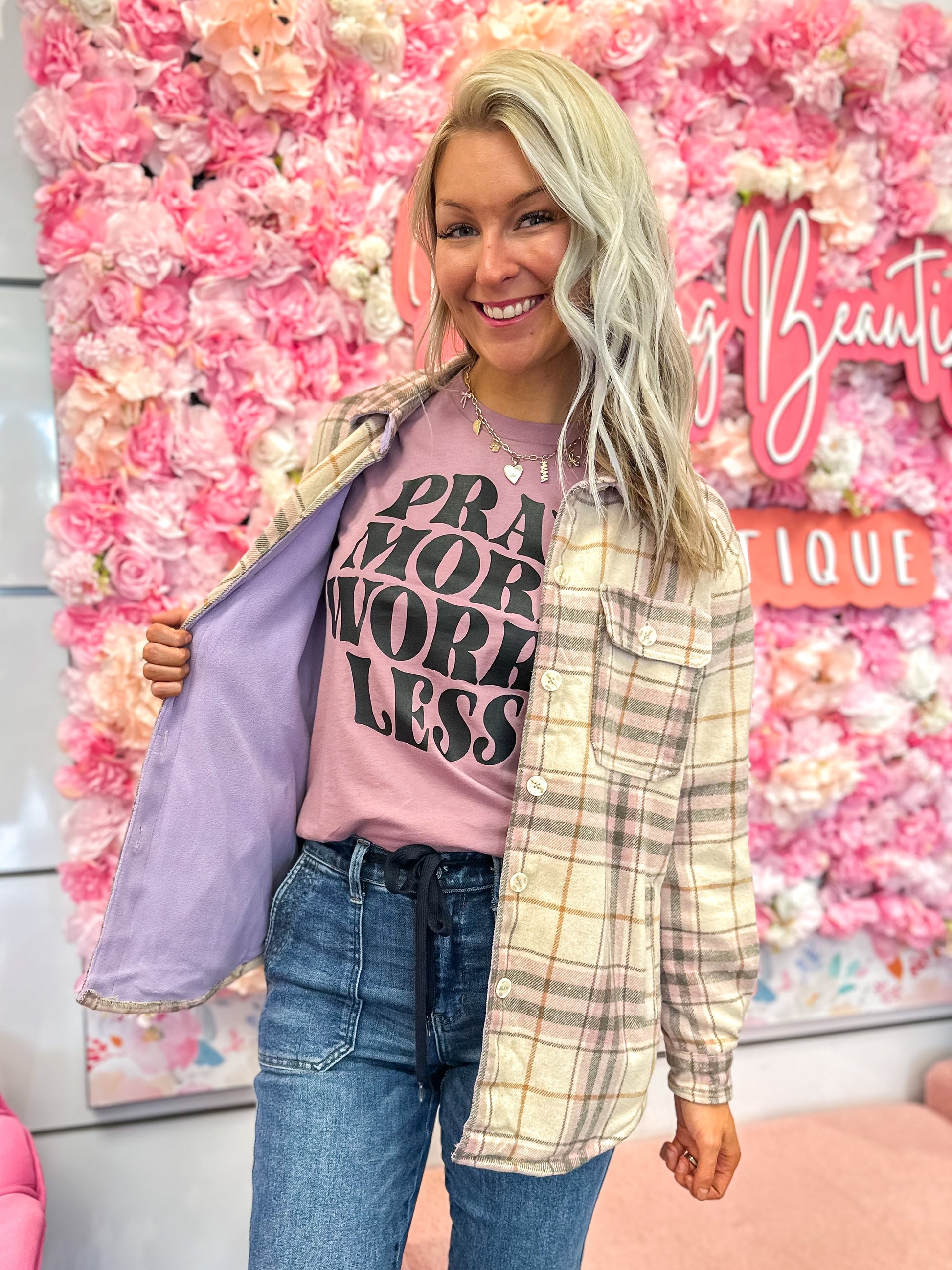 Our Finley Flannel Fleece Lined Shacket is the ultimate fall shacket! Featuring a gorgeous flannel front, cozy lilac fleece interior, side pockets & more!