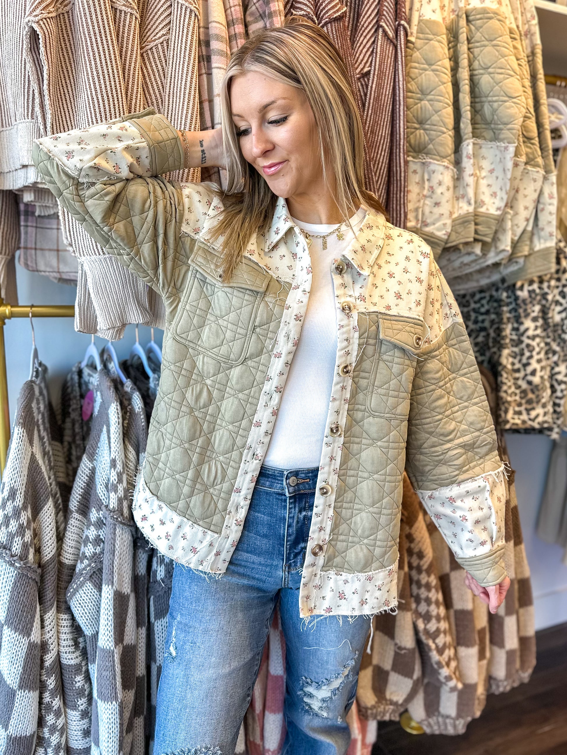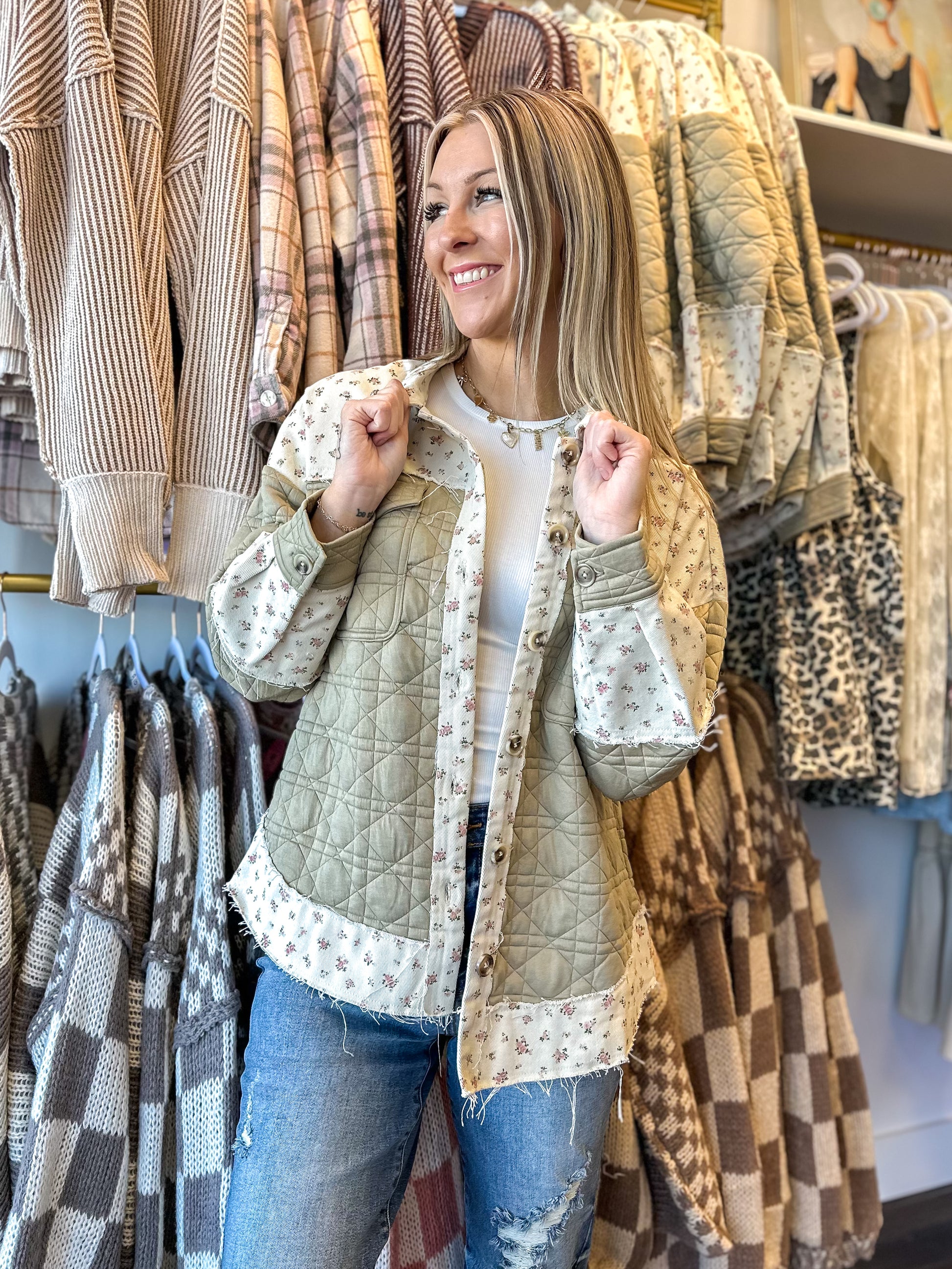 Introducing the statement shacket of the season, our Oakley Oversized Floral Detail Jacket.