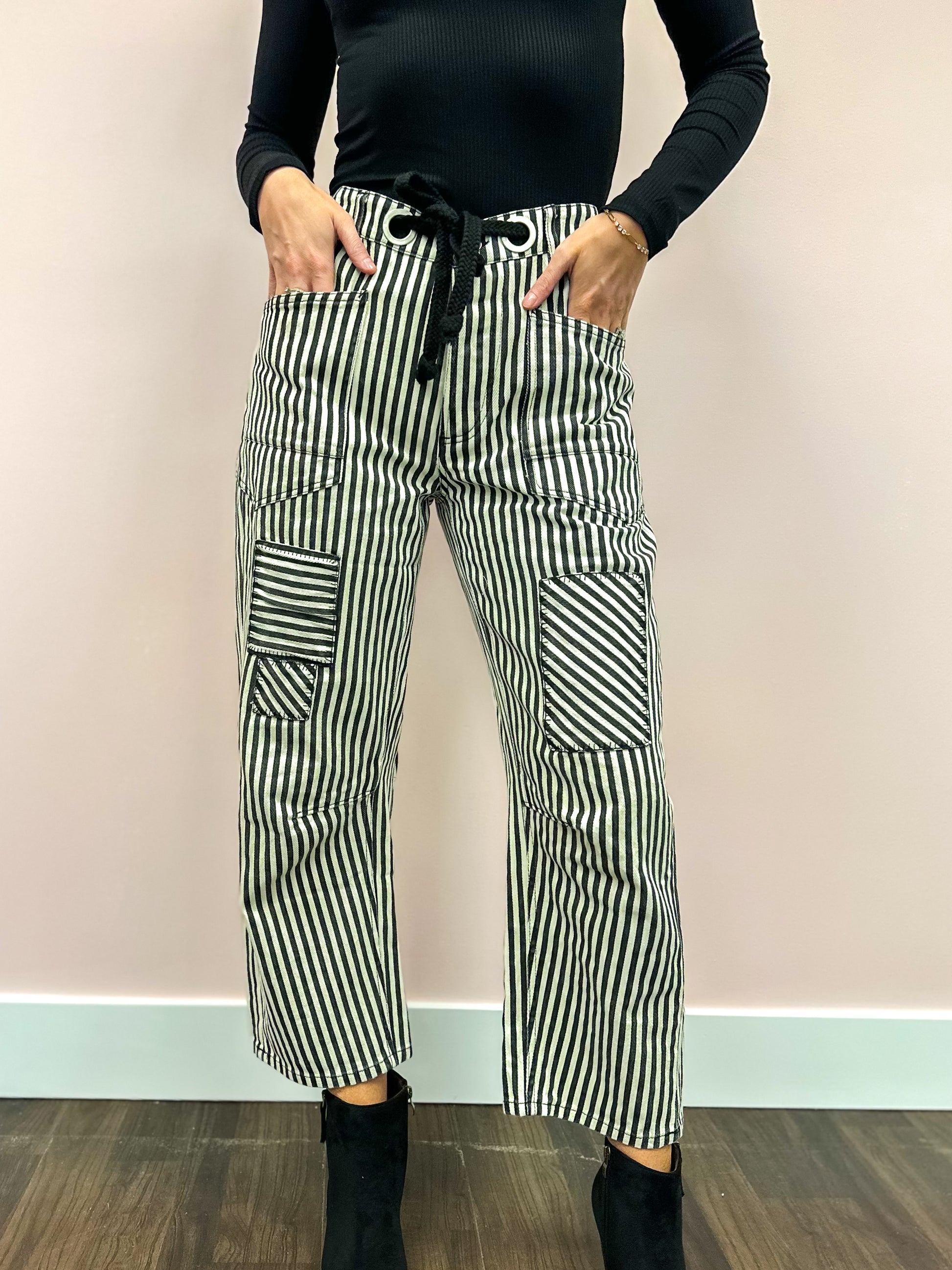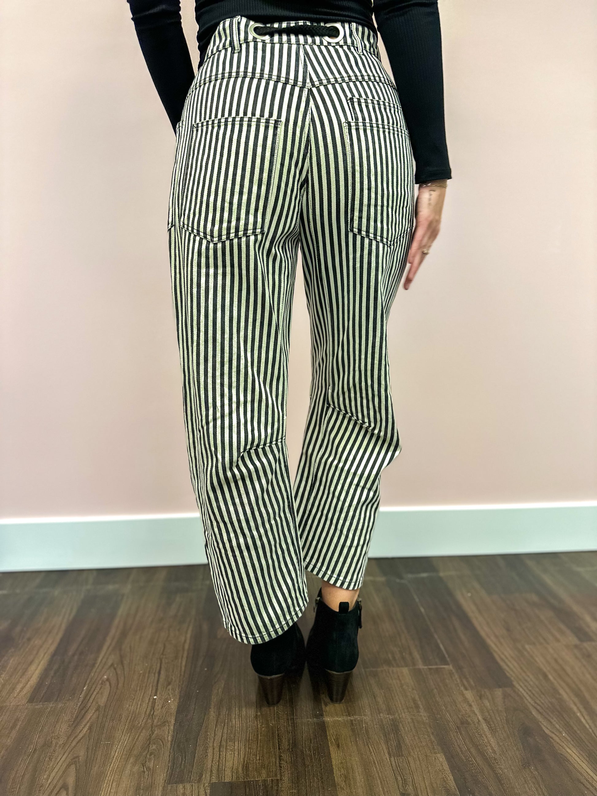 Meet your new style obsession, our Sutton Striped Twill Barrel Pants.