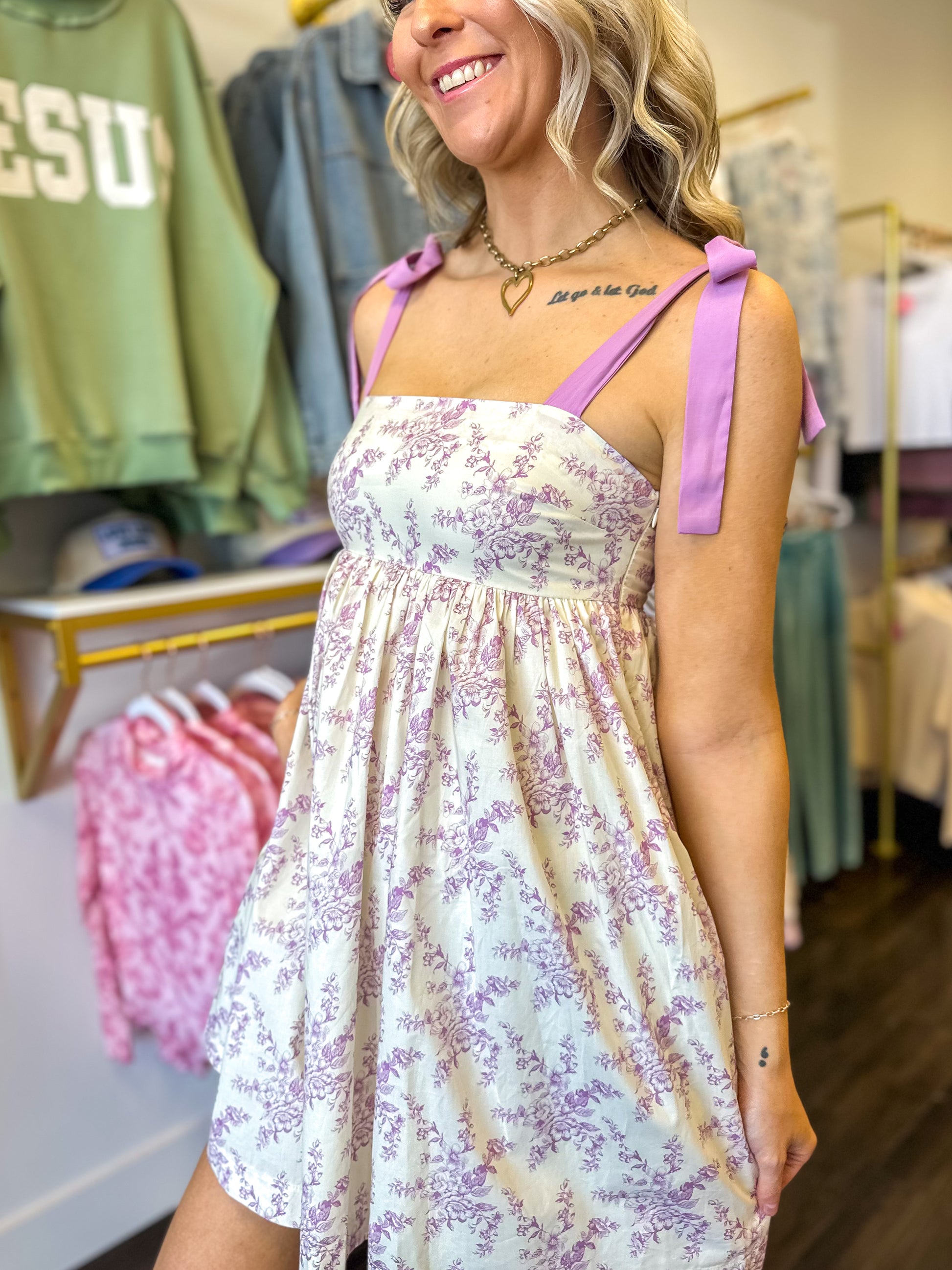 Talia Tie Strap Floral Mini Dress in Two Colors: Orchid & Midnight Blue.