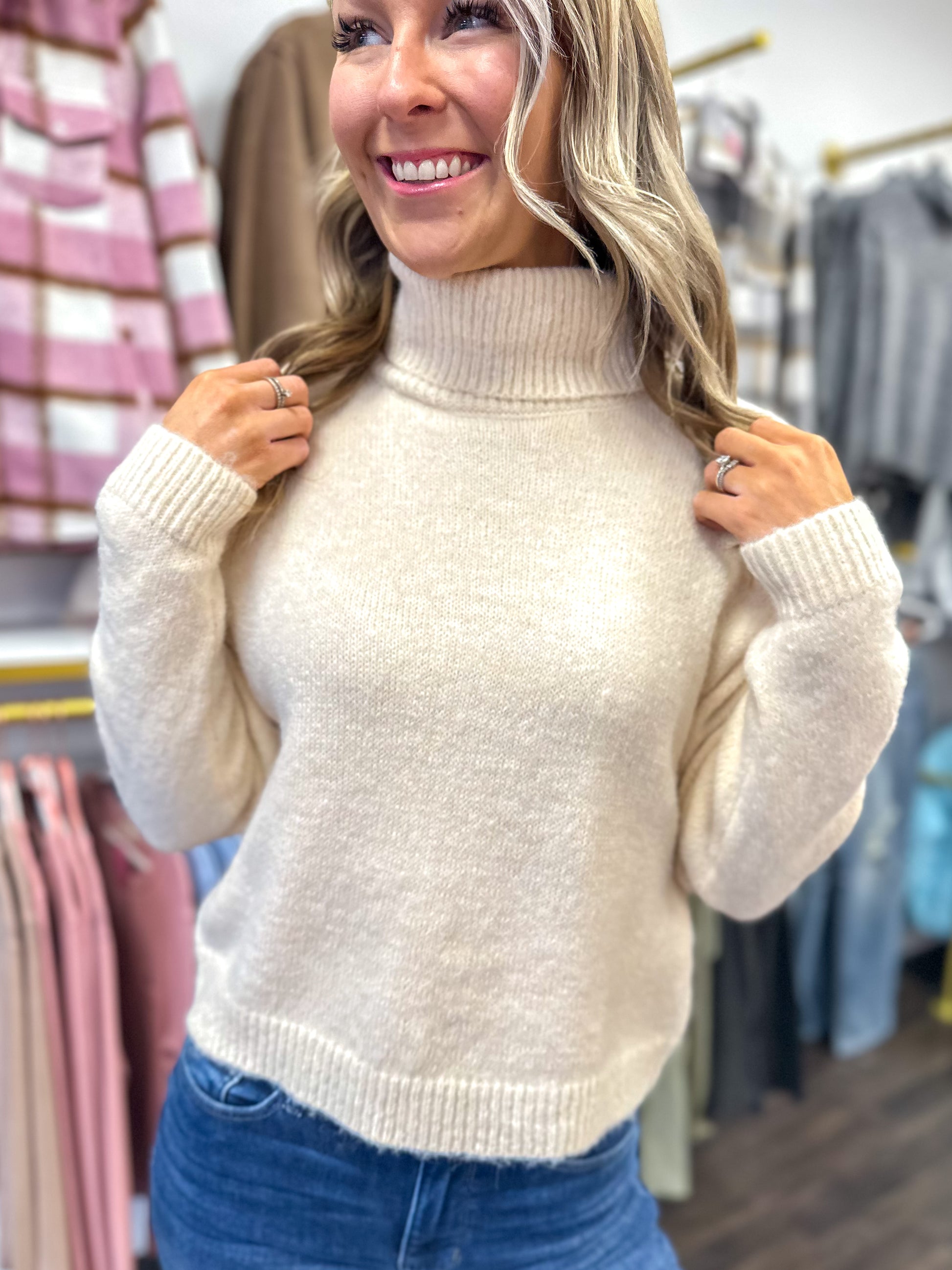 Tinsley Turtle Neck Sweater in Two Colors: Coconut & Black Sesame.